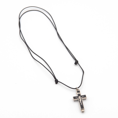 Μεταλλικός σταυρός λαιμού με την “Ευχή του Ιησού”. Διαστάσεων 3,2Χ2εκ. Με ρυθμιζόμενο κορδόνι αυξομείωσης μήκους 70εκ. Διαθέσιμος σε πέντε χρώματα χακί, χρυσαφί, ασημί, μαύρο και μπλε.